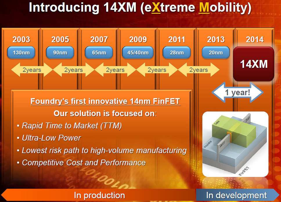 생산 지연으로 인한 위험을 줄이기 위해 글로벌파운드리즈는 14나노 공정을 자체 개발하는 대신 삼성의 기술을 도입하기로 했다. 자체 연구개발에 대한 확신이 있다고 보기 어려운 결정이었다.