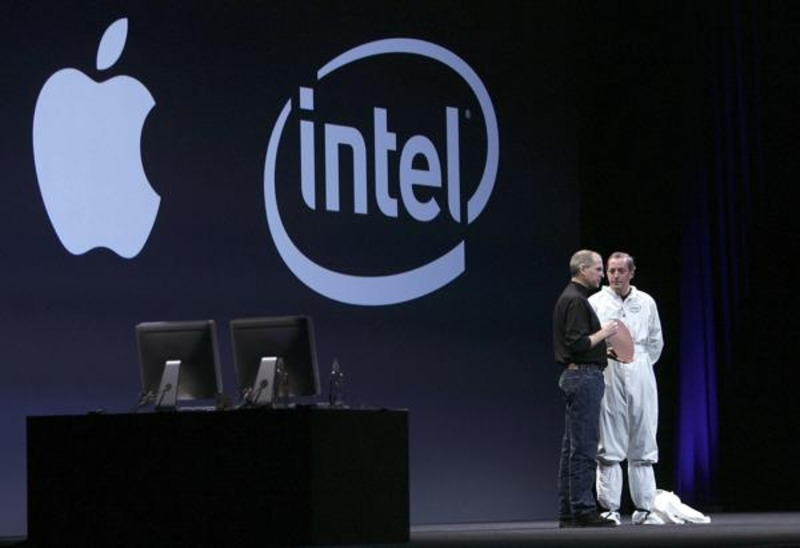 2006년 맥월드 컨퍼런스. 스티브 잡스가 어두운 연단에 서 있고 방진복을 입은 사람이 무대로 올라와 잡스에게 실리콘 웨이퍼를 건네며 말했다. "스티브, 인텔은 준비를 마쳤습니다."