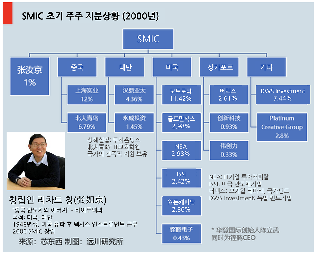 골드만삭스, 모토로라, 도시바 같은 국제 투자자들로부터 끌어온 15억 달러를 밑천 삼아. 창은 2000년 SMIC(Semiconductor Manufacturing International Corporation)을 창업했다. 창은 그 돈으로 수백여 명의 외국인을 고용해 SMIC의 팹을 운영했는데 그중 적어도 400명은 대만 사람이었다.