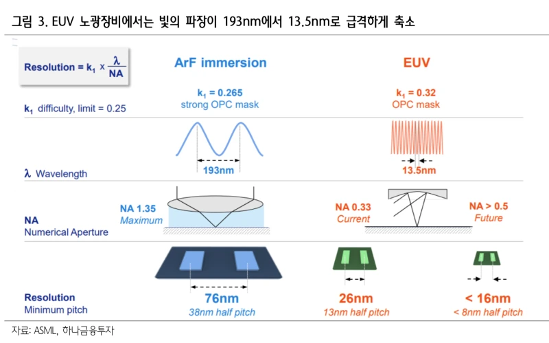 [EUV 노광장비의 변천 출처 ASML, 하나금융투자]