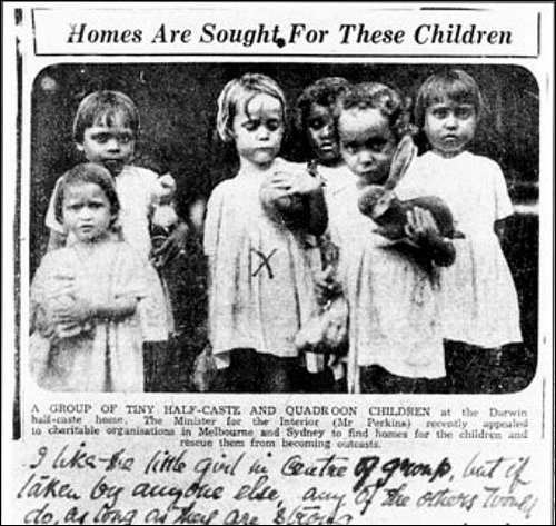 1910년부터 학살에서 살아남은 원주민 가운데 아이들은 가족과 떨어진 채 백인 가정이나 국가 시설에 맡겨졌다. 두 경우 모두 강제적인 흡수와 동화가 그 목적이었다(실제로는 노예처럼 부려졌다고 한다). 이 정책은 1970년대가 되어서야 비로소 중단됐는데 그때까지 이렇게 강제로 맡겨진 아이들, 소위 〈도둑맞은 세대〉가 10만 명 이상을 헤아렸다.