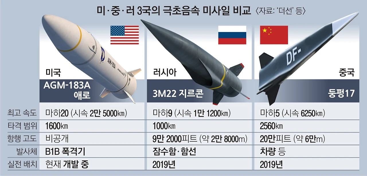 이제는 음속보다 20배 이상 빨리 날아가는 극초음속 미사일 개발이 이 분야에서 초미의 관심사가 되고 있다. 기존의 대륙간탄도미사일과는 달리 극초음속 미사일은 포물선을 그리며 비행하지 않고 방향과 고도도 변환할 수 있다. 이것이 발사되면 목표가 된 나라는 이 미사일의 타격지점을 계산할 수도 없으니 요격 미사일의 좌표도 찍을 수 없다.