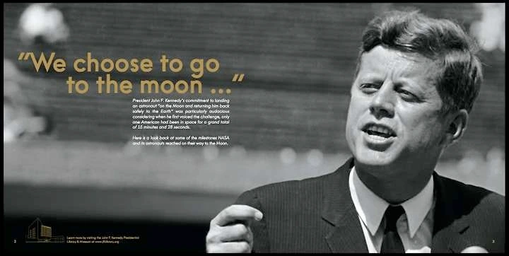 가가린의 성공이 있은 지 딱 6주 뒤에 케네디 대통령은 이렇게 천명한다. “미국은 이번 10년이 끝나기 전에 인간이 달에 착륙하고 안전하게 지구로 귀환하는 목표를 달성하는 데 최선을 다할 것이다.” 1969년 7월 20일, 마침내 달 표면에 발을 디딘 닐 암스트롱은 인간이 달에 머물면서 가장 길게 말한 시간으로 알려진 8초 분량의 문장을 말했다. “이것은 한 명의 인간에게는 작은 발걸음이지만 인류에게는 거대한 도약이다.”