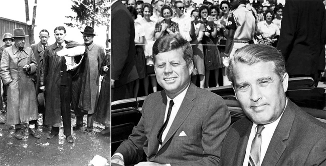 우주 경쟁에는 늘 군사적인 측면이 있었다. 그 개척자 중 한 사람인 로켓 공학자 베르너 폰 브라운은 우주 비행에 너무도 집착한 나머지 1930년대에 나치 독일에 협력하기까지 했다. 1944년에 최초로 우주 공간에 쏜 발사체가 된 V-2는 수직 이륙 후 고도 176킬로미터까지 날아올랐다. 종전 후 폰 브라운과 120명의 과학자들은 문제의 V-2와 함께 미국으로 옮겨가서 미국의 우주 프로젝트를 착수했다.