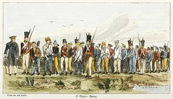 1787년 5월 13일, 마침내 최초의 수인 선단이 영국의 항구 도시 포츠머스에서 새로운 대륙을 향해 출발했다. 그리고 1788년 1월 24일, 선단은 보터니만에 닻을 내렸다. 11척의 배에는 1천5백 명이 타고 있었는데 570명의 남자와 160명의 여자로 이뤄진 730명의 기결수들을 제외한 나머지는 주로 영국 해군 관계자들이었다.