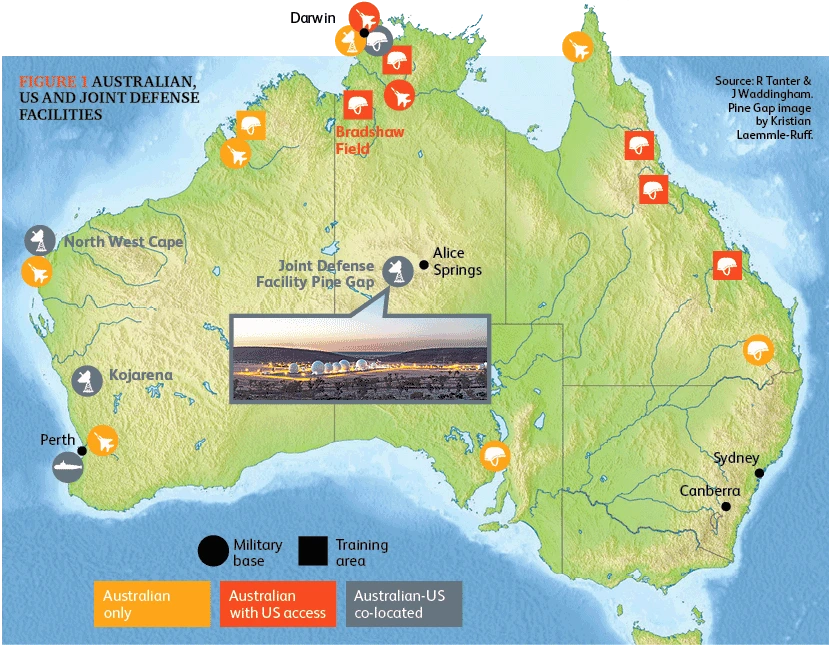 지금까지 오스트레일리아는 최고 우방들과 밀착 관계를 유지해 오고 있다. 미국, 영국, 뉴질랜드, 캐나다가 가입한 지구상에서 가장 효율적인 정보 수집망인 파이브 아이즈(Five Eyes)의 회원국이며, 전 세계 미국 정보 수집 시설 중 하나인 파인 갭(Pine Gap) 군사기지를 자국의 앨리스 스프링스 부근에 설치하도록 허락했다.