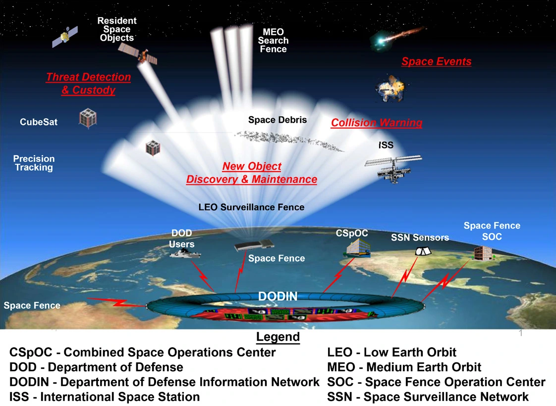 미국 정부는 록히드 마틴 사와 함께 스페이스 펜스(Space Fence) 계획을 추진하고 있다. 이것은 지상에 설치된 레이더로 위성과 그 궤도 내 잔해들을 추적하는 일종의 감시 시스템이다. 현재 미 국방부는 대략 2만 개 이상을 추적할 수 있다고 한다. 그들은 이 능력을 10만 개까지 늘리고 위성을 표적으로 발사되는 레이저의 출처도 정확히 밝혀낼 수 있을 것으로 내다보고 있다.