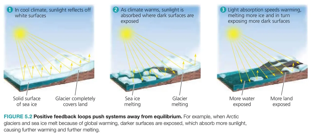 얼음이 녹고 툰드라가 바닥을 드러내면서 두 가지 일이 일어날 가능성이 높아졌다. 일단 빙원(지표의 전면이 두꺼운 얼음으로 덮여 있는 극지방의 벌판의 노화가 가속화된다. 이른바 <알베도 효과Albedo effect>이다.