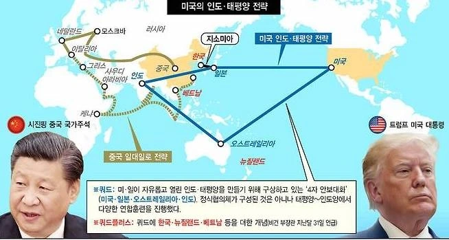 일본과 오스트레일리아는 그와 같은 상황을 막기 위해 미국도 참여하고 있는 쿼드(Quad) 안에서 인도 해군과 협력하고 있다. 쿼드는 동맹체라기보다는 미국, 인도, 일본, 오스트레일리아 등 4개 나라의 해군이 태평양에서 협력하는 전략적 협의체라는 측면이 더 강하다.