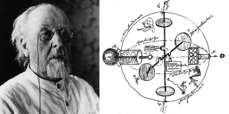 러시아에서는 20세기 초반, 독학자이자 은둔형 과학자로 알려진 콘스탄틴 치올코프스키는 우주 비행에 관한 이론을 연구하고 있었다. 그는 우주 공간에 도달하기 위한 중력권 탈출 속도는 초속 8킬로미터가 돼야 하며 액체 연료와 다단계 로켓을 사용하면 가능하리라는 가설을 처음으로 세웠다. 또한 그는 우주 정거장과 에어록, 산소 시스템의 청사진을 설계하기도 했다. 그의 논문들 다수가 비행기가 최초 비행을 하기도 전에 출판됐다. 그가 우주여행의 아버지라 불리는 이유도 부분적으로는 여기에 있다.