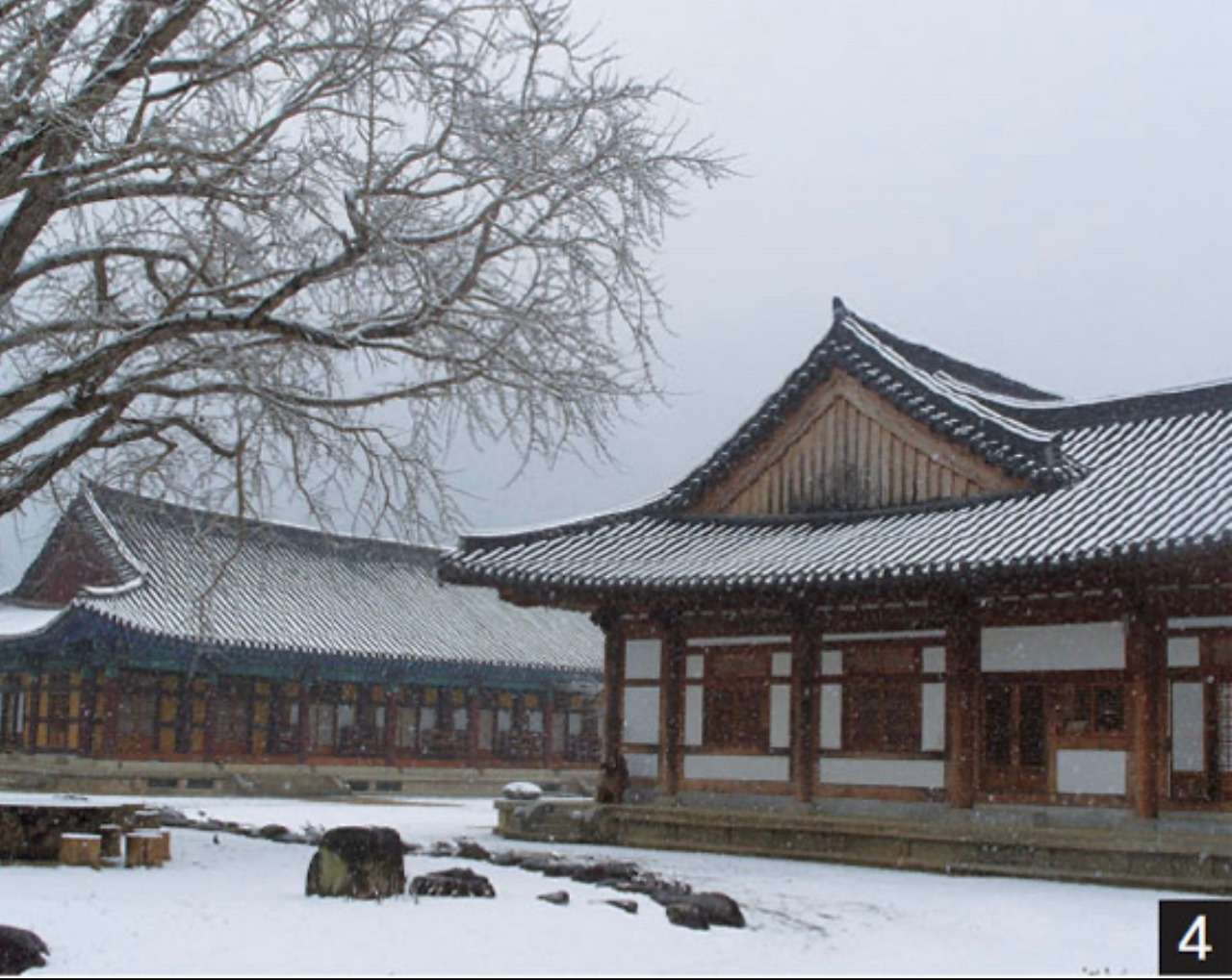 그제야 사랑채의 축대를 높이 쌓아 안채, 아래채와 수평을 맞추었다는 사실도 알게 되었다. 요사스러운 변화나 번잡스러운 치장이 없는 명료한 구성, 그것은 채색장식화가 아닌 담백한 수묵담채의 문인화 같은 멋이다.