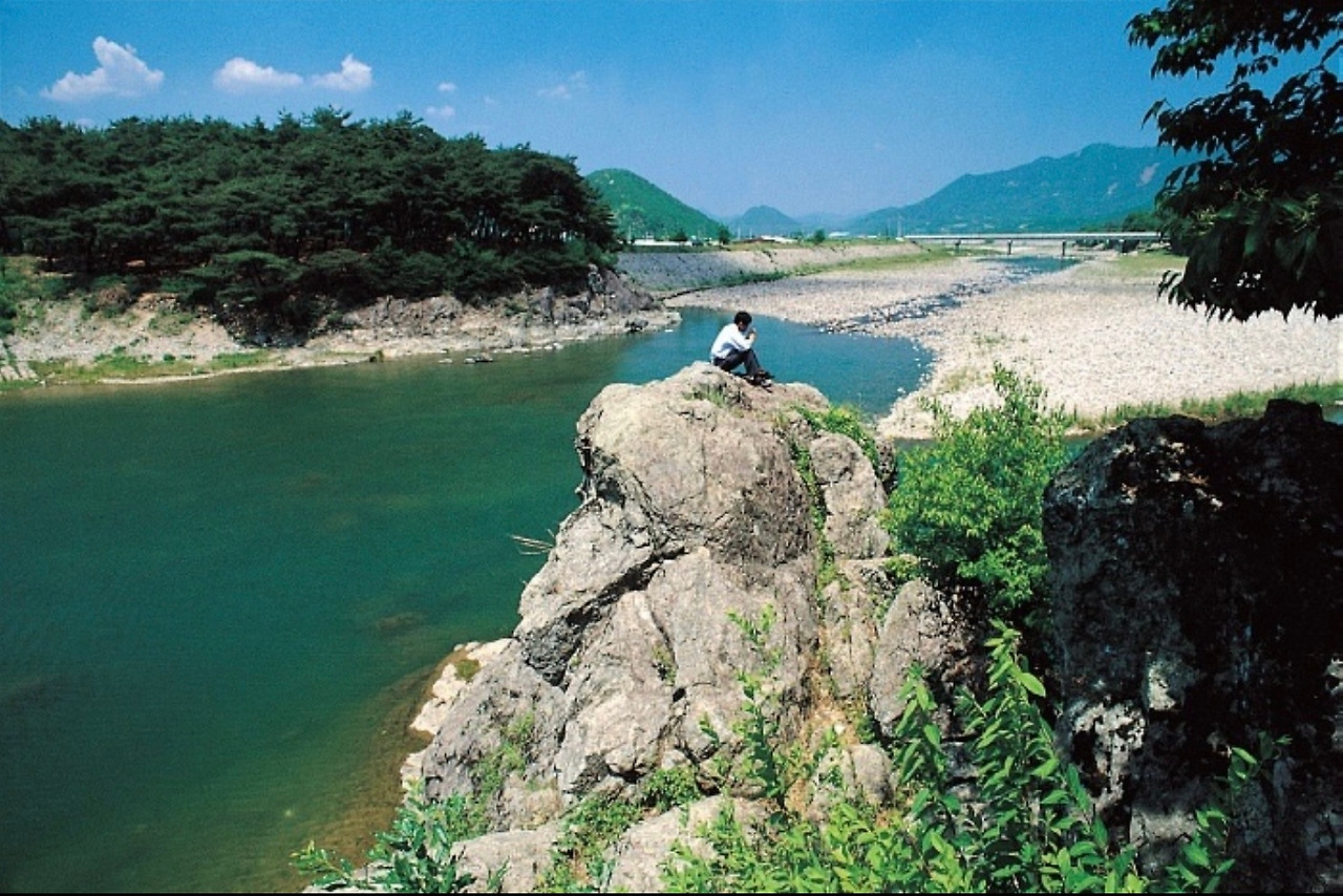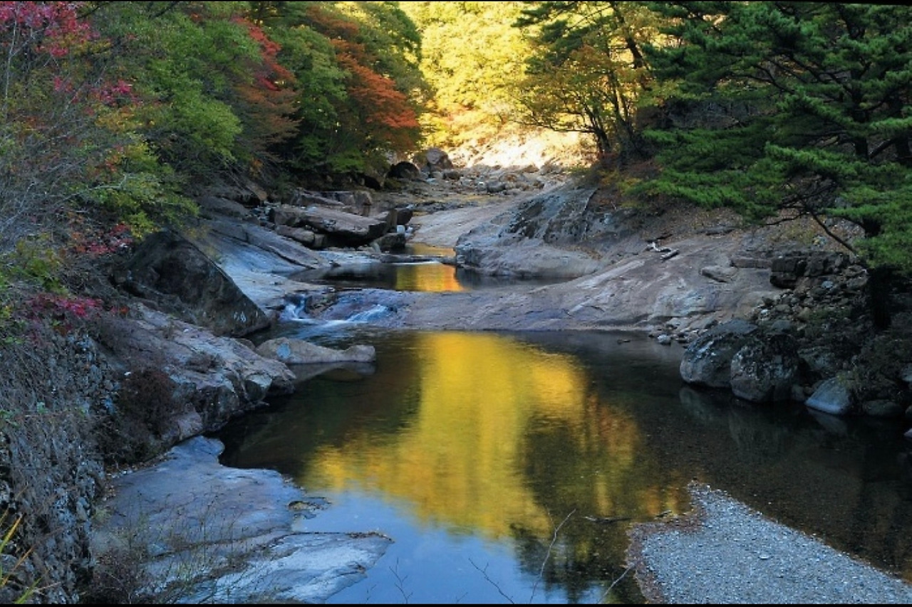 육십령고개를 넘으면 금천계곡을 곁에 두고 줄곧 비탈길을 내려가게 된다. 덕유산에서 발원한 계류가 흙모래를 다 쓸어내고 골격 큰 화강암바위를 넘으면서 곳곳에 못을 이루고, 어쩌다 너럭바위를 만나면 미끄러지듯 흘러내려 아름다운 풍광을 곳곳에 빚어놓았다.