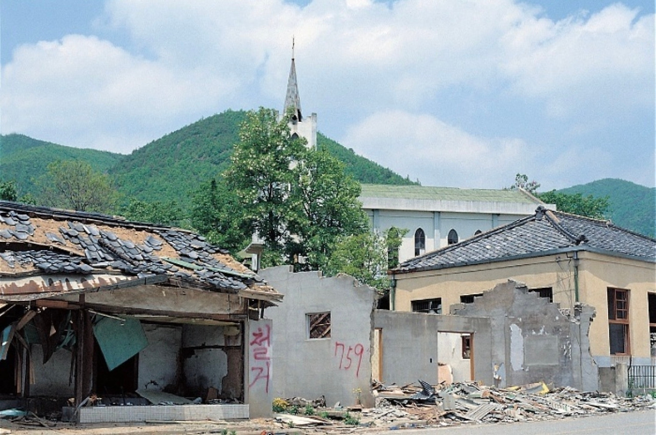 대천리사람들의 집단 강제이주는 1991년 가을부터 시작되었고, 1992년 봄부터 잔인한 불도저는 대천리마을 건물과 집 들을 허물기 시작했다. 모든 담벽에는 붉은 스프레이로 철거, 철거, 철거…… 철거가 휘날리는 초서체로 씌어졌다. 그 철거 글씨가 미처 닿지 않은 벽에는 철자법 하나 맞지 않는 대천리사람의 흐느끼는 호소와 분노의 외침도 적혀 있었다.