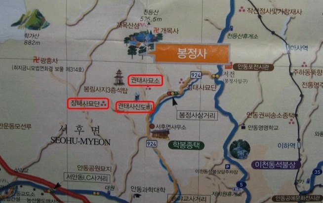 봉정사에서 나와 우리의 다음 목적지인 하회의 병산서원으로 향하면 서후에서 검제(금계)를 지나 풍산으로 들어가면 된다. 길에는 ‘장태사묘(張太師廟) 입구’가 있고 또 검제 다 가서는 ‘권태사묘(權太師廟) 입구’도 나온다. 그러니까 이 안쪽은 바로 ‘안동 삼태사의 묘’가 모두 모여 있는 안동 역사의 진원지인 것이다.