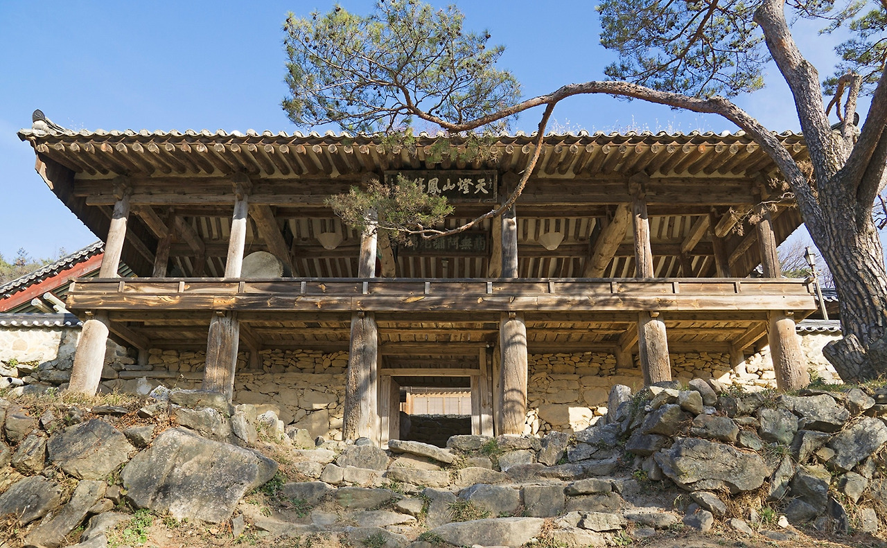 봉정사의 절집 진입로는 만세루인 덕휘루(德輝樓) 아래로 난 돌계단으로 되어 있다. 정성을 다해 가지런히 쌓았으면서도 천연의 멋을 다치지 않았다. 돌계단을 밟고 만세루를 향하면 품에 안을 듯 압도하는 누각에 몸을 맡기고 싶어진다. 그리고 반드시 누마루 아래로 난 돌계단을 따라 고개를 숙이고서야 안마당으로 들어서게 되니 성역에 들어가는 겸손을 저절로 보이게 되는 것이다.