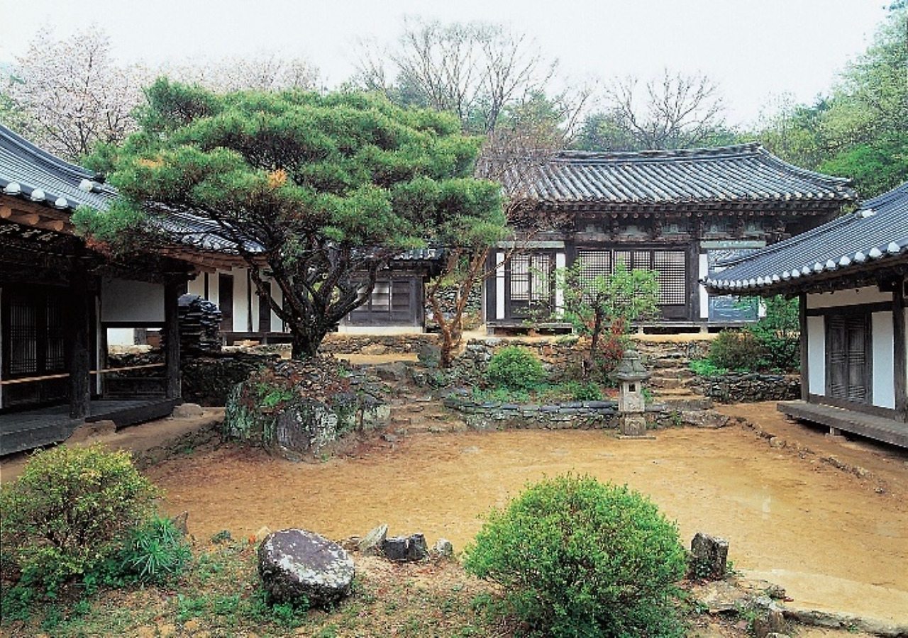 안마당은 굴곡과 표정이 많아서 조금 전 우리가 본 봉정사 대웅전이나 극락전과는 전혀 다른 뭔가 부산한 느낌을 갖게 된다. 일부러 가산(假山)을 만들고 거기에 괴석(怪石)과 굽은 향나무를 심고 여름꽃도 갖가지, 관상수도 갖가지다. 툇마루도 있고 누마루도 있고 넓은 정자마루도 있으며 뒤뜰로 이어지는 숨은 공간도 많다.