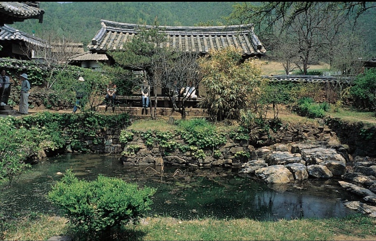 입암에서 청기(靑杞)로 가는 길을 따라 얼마를 가다보면 반변천상에 불쑥 솟은 선바위, 입암(立岩)이 나오고 거기서 조금 더 들어가면 연당리 작은 마을이 나온다. 여기는 동래 정씨 동성마을로 진흙 돌담이 집집마다 둘러쳐져 있는 예스러운 동네이며, 그 한쪽 켠에 서석지(瑞石池)가 자리잡고 있다.
