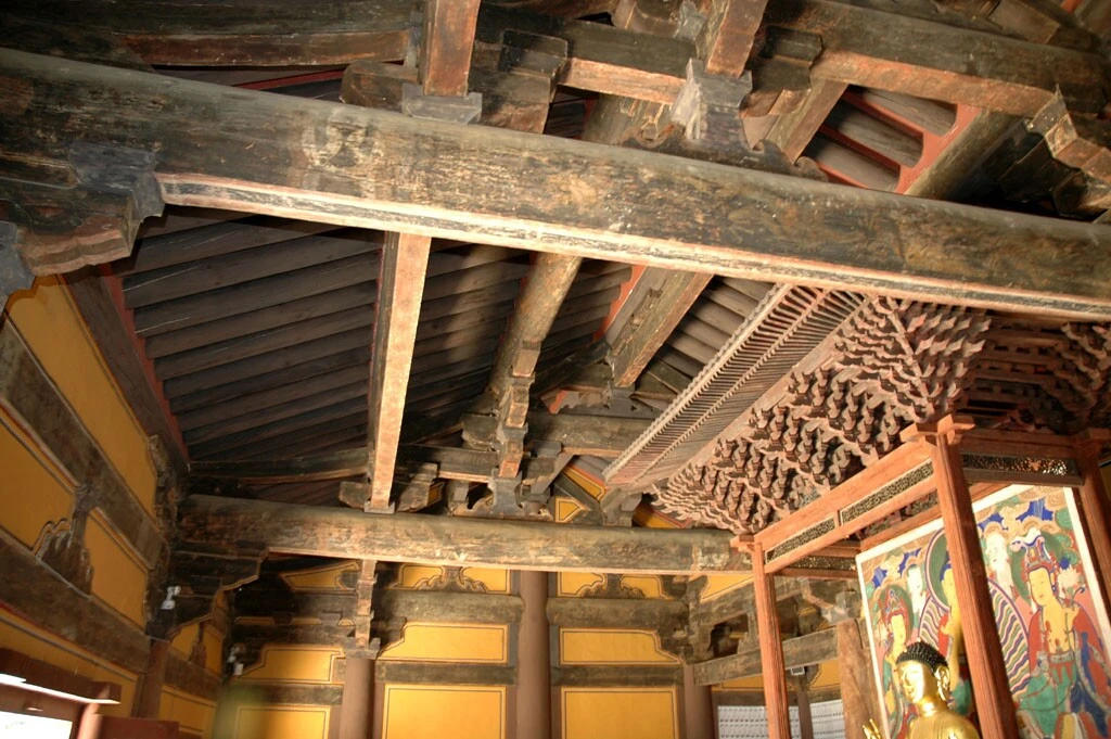 봉정사 극락전의 이 간결하면서도 강한 아름다움과 고구려식 결구와 복화반 받침 등의 특징은 내부에서 더 잘 보여준다.