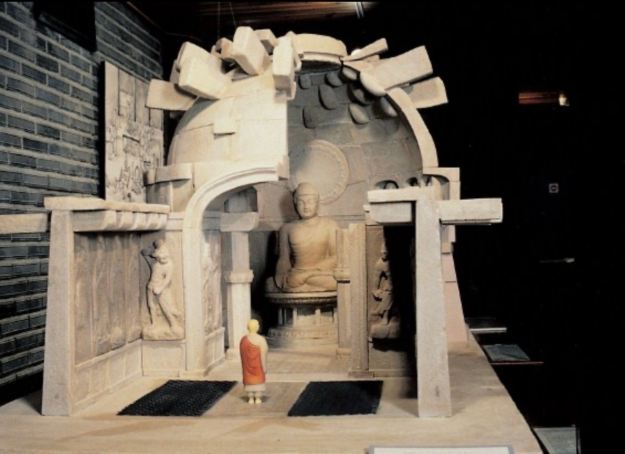 그 구조의 진기함과 조각의 정미(精美)함은 당대의 최우수 유물이라 하겠는데, 현상은 반구형(半球形) 천장의 3분의 1 정도가 추락하여 동혈(洞穴)이 되어 그 안으로 산 위의 흙과 모래가 유입되어 불상을 더럽히고 있으며, 현상태로 놔두면 천장의 3분의 2도 추락하여 주벽 불상을 상하게 되고 중앙에 있는 석가모니 대상을 파괴하여 동양 무비(無比)의 미술품을 멸망시킴에 이른다.