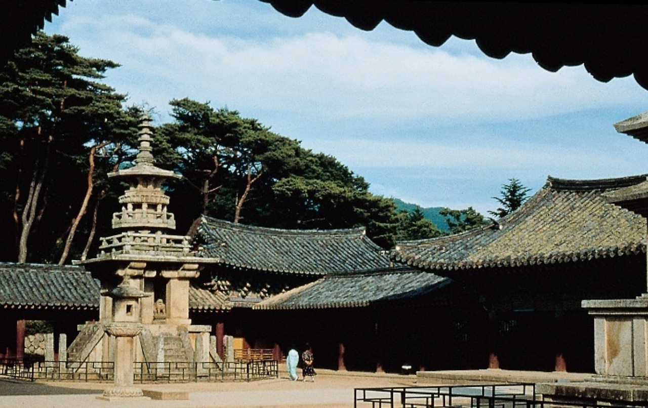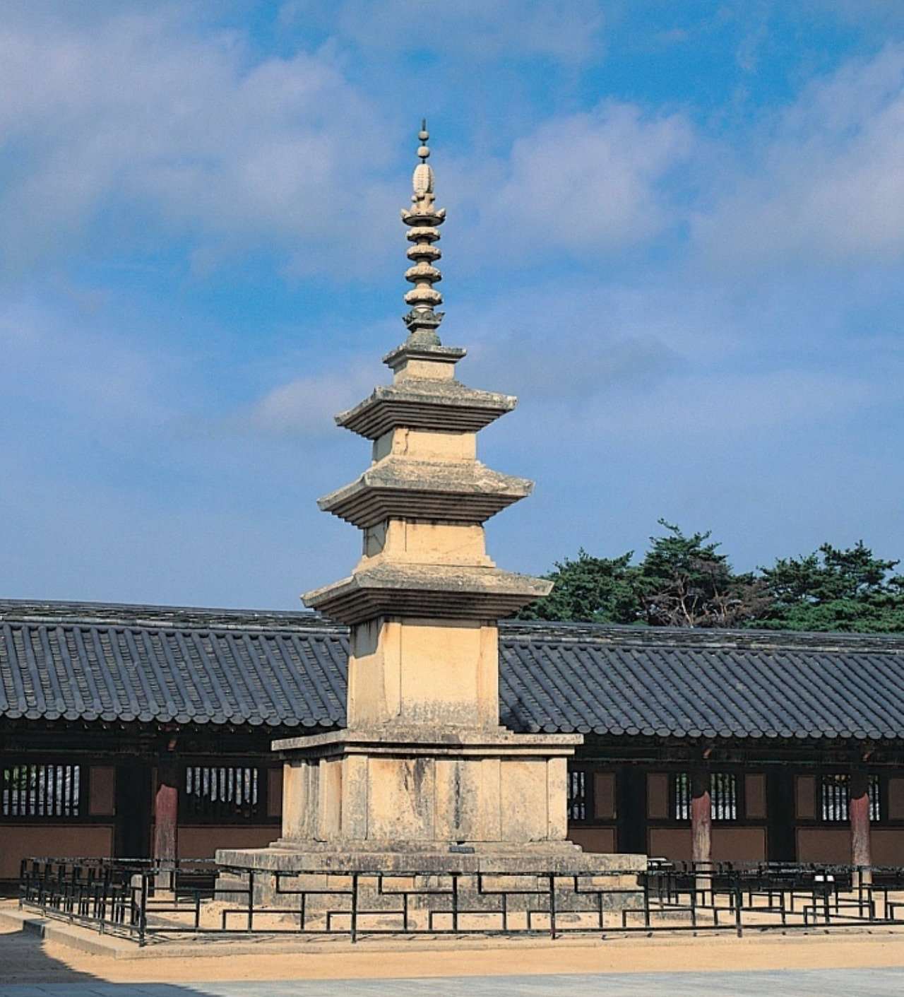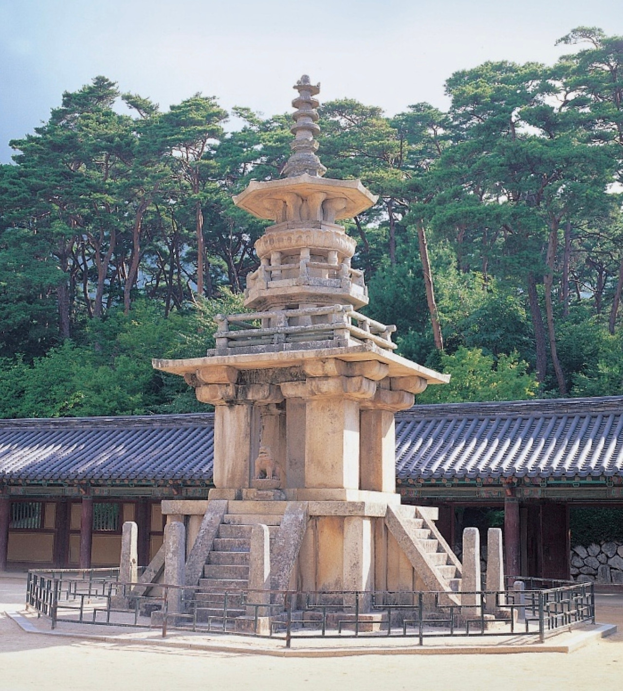 이리하여 33천에 올라 자하문에 들어서면 석가모니 부처를 모신 대웅전과 마주하게 되고 그 좌우로는 석가탑과 다보탑이 시립하듯 우뚝 서 있다. 이런 쌍탑의 설정은 『묘법연화경』의 「견보탑품(見寶塔品)」에 나오는 이야기*를 그대로 건축적으로 구현한 것이다.