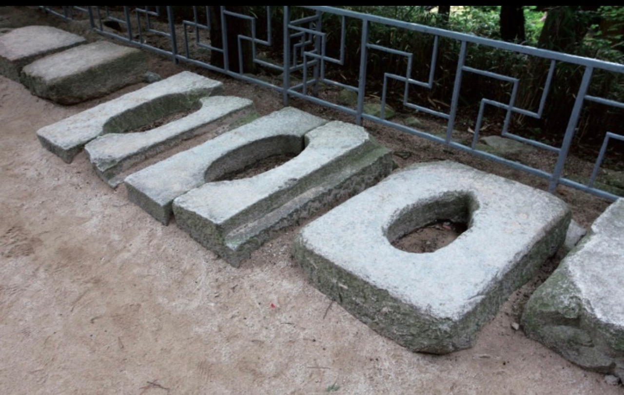 여섯번째, 불국사 서북쪽의 빈터에는 불국사 복원 때 사용되지 않은 석조 부재들이 널려 있는데 이중 주춧돌이야 누구나 알 만한 것이지만, 뒷간에 사용되었던 타원형으로 구멍난 돌은 참 신기하고 재미있다.