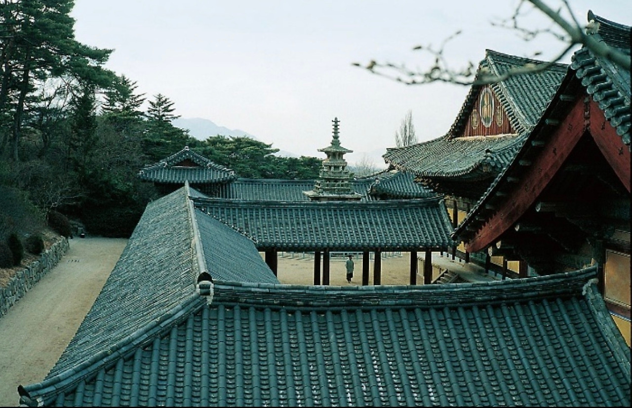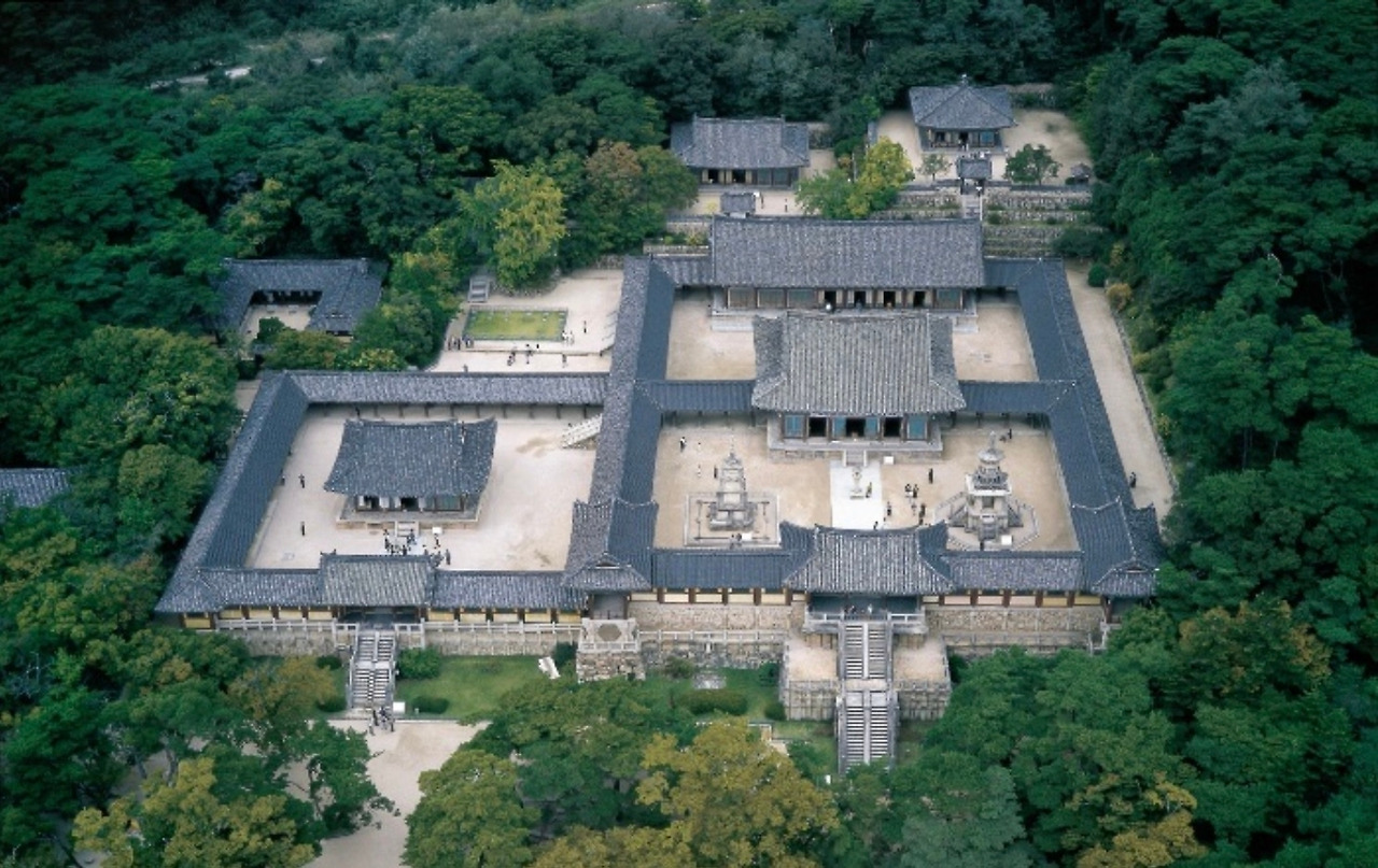 부석사는 백두대간의 여맥을 절 앞마당인 양 끌어안는 장엄한 스케일을 보여주고, 선암사는 부드러운 조계산 자락이 사방에서 감지되는 아늑한 산중에 자리잡았는데, 불국사는 산자락을 타고 올라앉았으면서도 비탈을 평지로 환원하여 반듯하게 경영되었다.