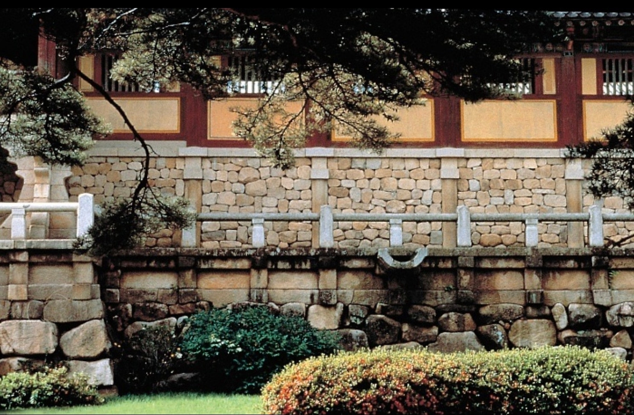 반듯하게 다듬은 장대석으로 네모칸을 만들면서 열지어 가는 것이 기본틀인데 그 직사각형 속은 제각각 다른 크기의 자연석으로 꽉 채우고 청운교·백운교, 연화교·칠보교에서 인공미를 최대한 구가했는가 하면 크고 잘생긴 듬직한 자연석을 그대로 기단부로 삼는 대담한 여유를 보여주기도 했다.