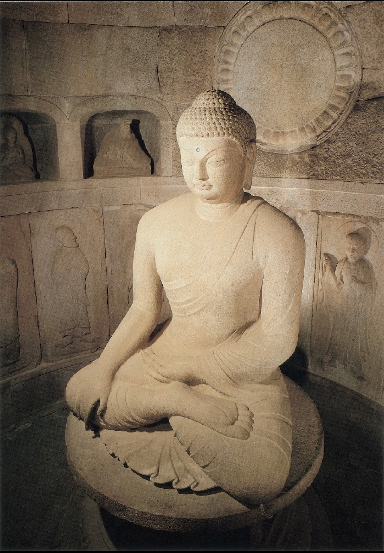걸음을 굴 밖에서 굴 안으로 옮기면 마음도 또한 내면의 세계로 들어간다. 위대한 불타는 소리없이 조용히 그 부동의 모습을 연화좌대 위에 갖춘다. 우러러보는 자는 그 모습의 장엄과 미에 감동되지 않을 수 없다. 이곳은 완전히 내적인 영(靈)의 세계다. 그는 앞에 네명의 여보살을, 뒤에는 십일면관음을, 그리고 좌우에는 그가 사랑하는 열 사람의 제자를 거느리고 영원의 영광을 고한다. 감실에 있는 여러 불상들은 그 법열을 찬송하는 듯하다.