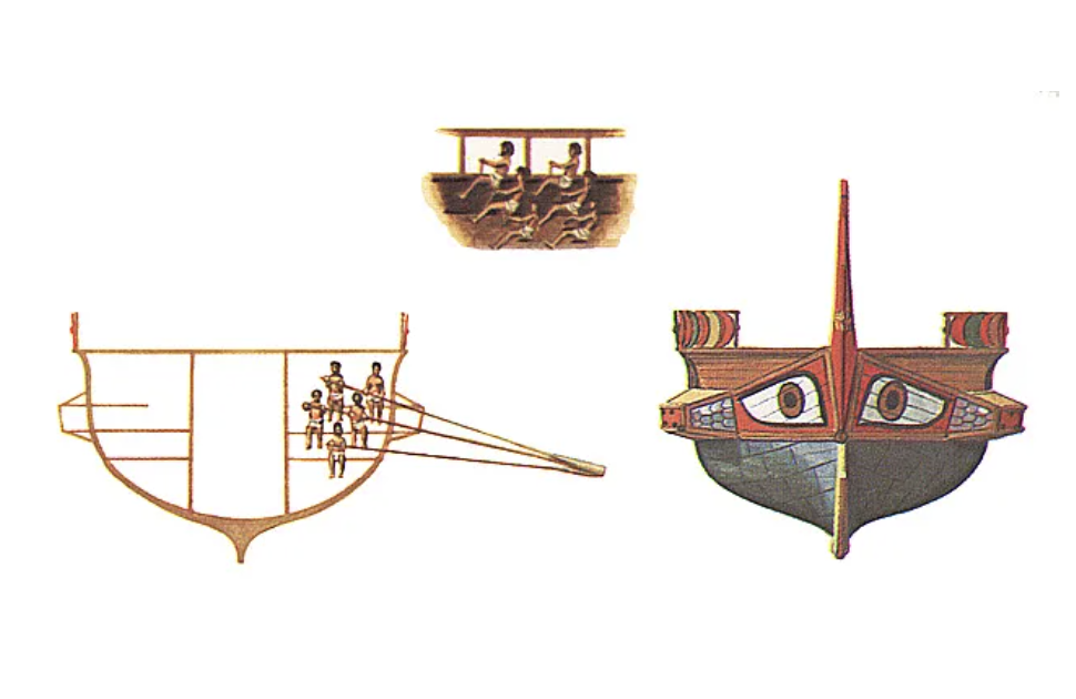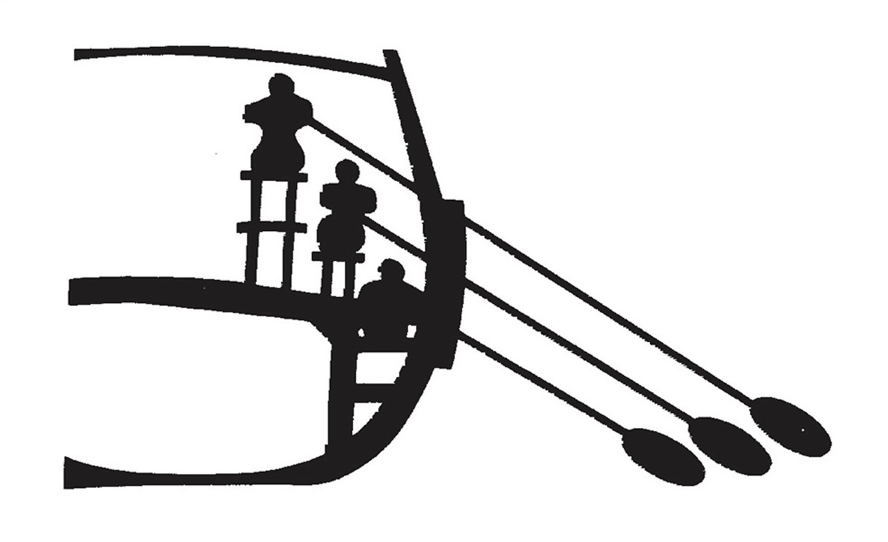 100명의 노잡이가 필요한 3단층 갤리선에서는 전투원이 한 척당 100명이었다. 5단층 갤리선의 노잡이 수는 300명, 전투원의 수도 역시 300명이었다. 5단층 갤리선은 노잡이 단이 5층이나 되기 때문에 배의 높이도 훨씬 높아진다*(주: 이 부분은 좀 잘못된 것 같다. 5단층도 노잡이가 5명이지만 3단이었다고 한다).
