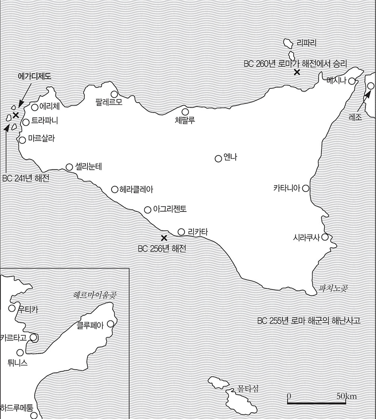 카르타고는 이렇게 시칠리아에서 400년 동안 쌓아올린 기득권을 송두리째 상실하고 말았다. 그것은 지중해 서쪽 바다를 잃은 것이기도 했다.