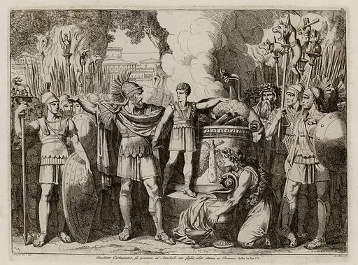 하지만 뱃머리가 부서지는 것도 아랑곳하지 않고 돌격해온 로마 군선에서 큰 소리를 내며 ‘까마귀’가 떨어졌다. 카르타고 선박의 갑판에 파고든 ‘까마귀’를 따라 로마 병사들이 물밀듯 쏟아져 들어왔다. 로마 군단의 중추라고 일컫는 중무장 보병들이다.