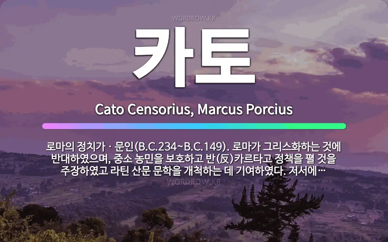 그 자리에 있던 사람들은 모두 두 호민관을 뒤에서 조종하고 있는 것이 스키피오 반대파의 리더격인 마르쿠스 포르키우스 카토, 역사에서는 대(大)카토(Marcus Cato the Elder)라고 불리는 사람인 것을 잘 알고 있었다. 그는 지방의 평민계급 출신으로 당시 로마 정치계에서는 ‘신인’으로 불렸다.