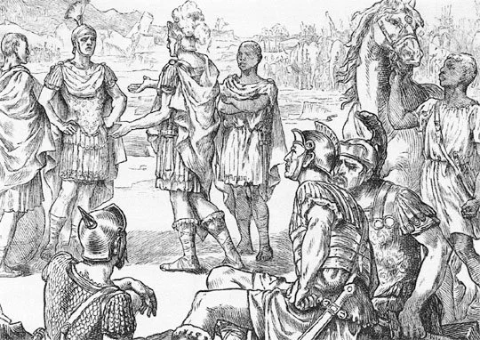 그들을 붙잡은 백인대장은 압수한 편지가 페니키아어로 씌어 있는데다 여섯 명이나 되는 기사의 소지품을 보고, 중요한 편지라고 직감했다. 그는 당장 편지를 집정관 네로에게 가져갔다.
