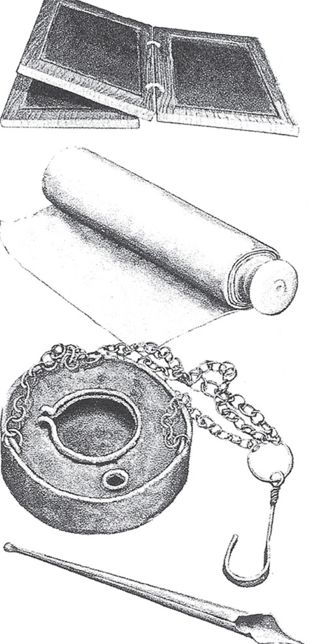 로마에서는 기초 과정을 마친 뒤의 수업은 선인들이 남긴 글을 읽는 것으로 이루어진다. 문법, 수사학, 변증학, 역사, 지리 모두 호메로스나 투키디데스나 플라톤이나 대(大)카토의 저술을 읽음으로써 배워나간다. 학생들이 쓰는 ‘공책’은 밀랍을 먹인 목판이다. 여기에 철필이나 상아펜으로 글을 쓰는 것이다.