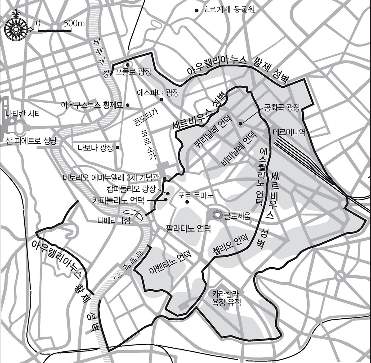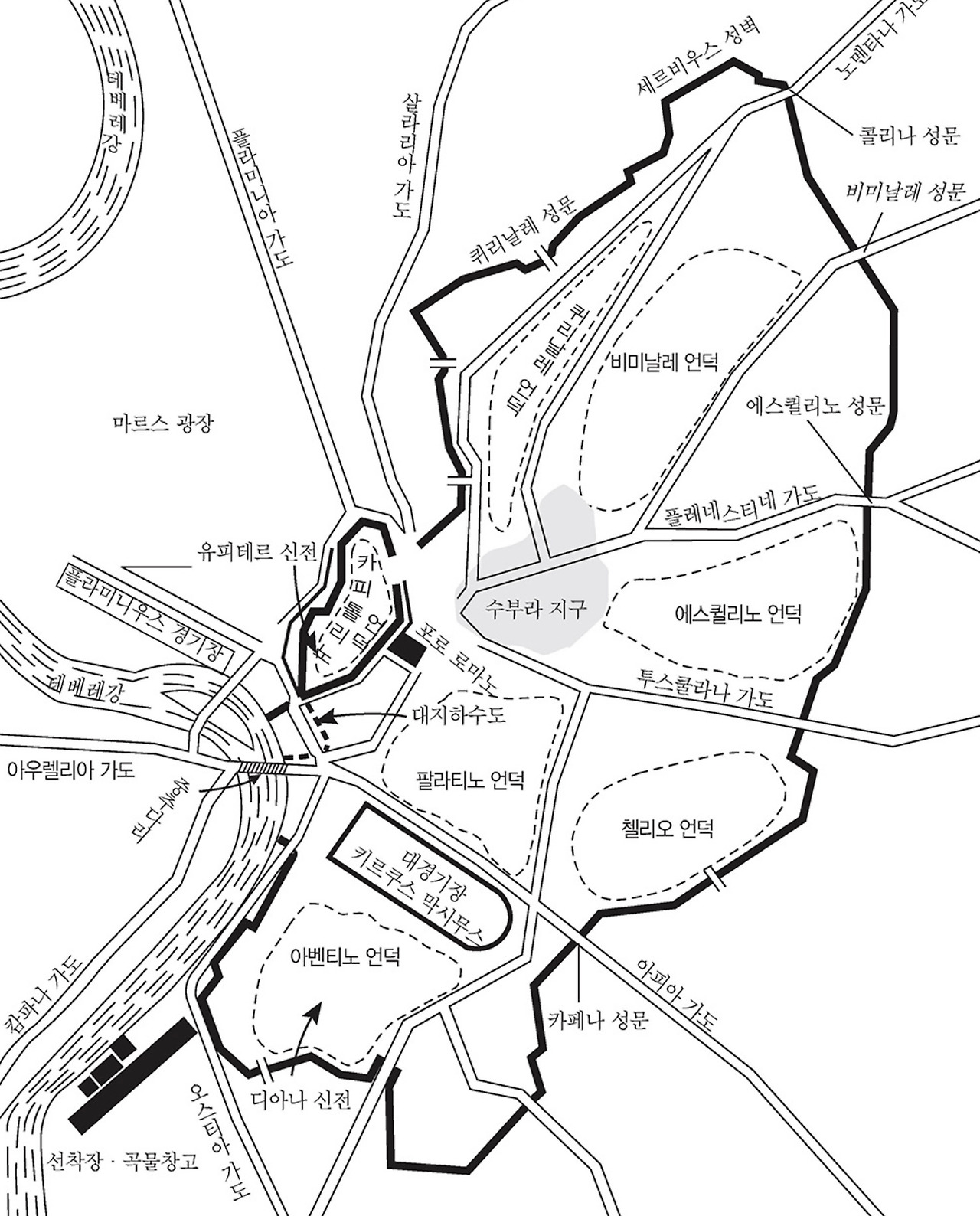 고대 로마의 심장부인 '포로 로마노(라틴어로는 포룸 로마눔)'를 중심으로 신전과 부자인 귀족들이 거주지가 있는 '로마의 일곱 언덕'이 있다. 그리고 그 언덕 아랫쪽에는 서민들이 상당히 넓은 범위에 걸쳐 집중적으로 모여 살던 지역도 있었다.