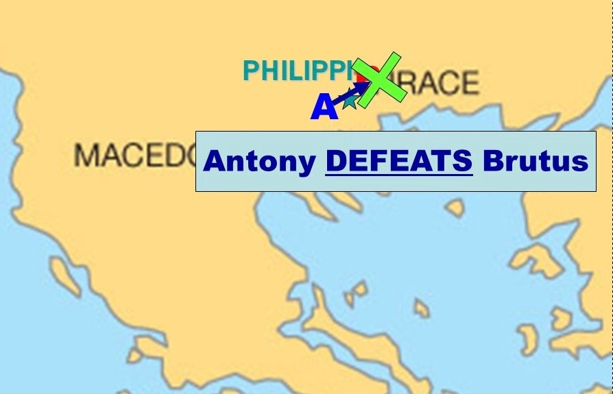 아내와 동생이 군대를 일으켜 옥타비아누스를 흔들어놓으면, 자신이 이탈리아로 건너가 최종적으로 옥타비아누스를 쫓아낸다는 것이 애초의 계획이었다. 그는 이 계획을 마무리하기 위해 이집트를 떠나 이탈리아로 갔지만, 브린디시에 입항해서야 비로소 반란이 실패로 끝난 것을 알았다.