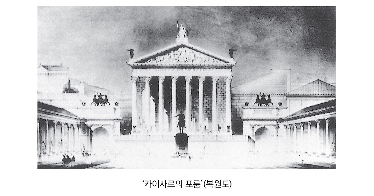 ‘포룸’(forum)-이탈리아어로는 ‘포로’(foro)-은 고대 로마인에게는 공공생활의 중심지를 의미했다. 포룸은 정치·행정·사법·종교·경제가 혼연일체가 되어 이루어지는 곳이다. 카이사르의 수도 재개발 구상은 이 혼연일체 방식을 더욱 명확히 한 것이다.