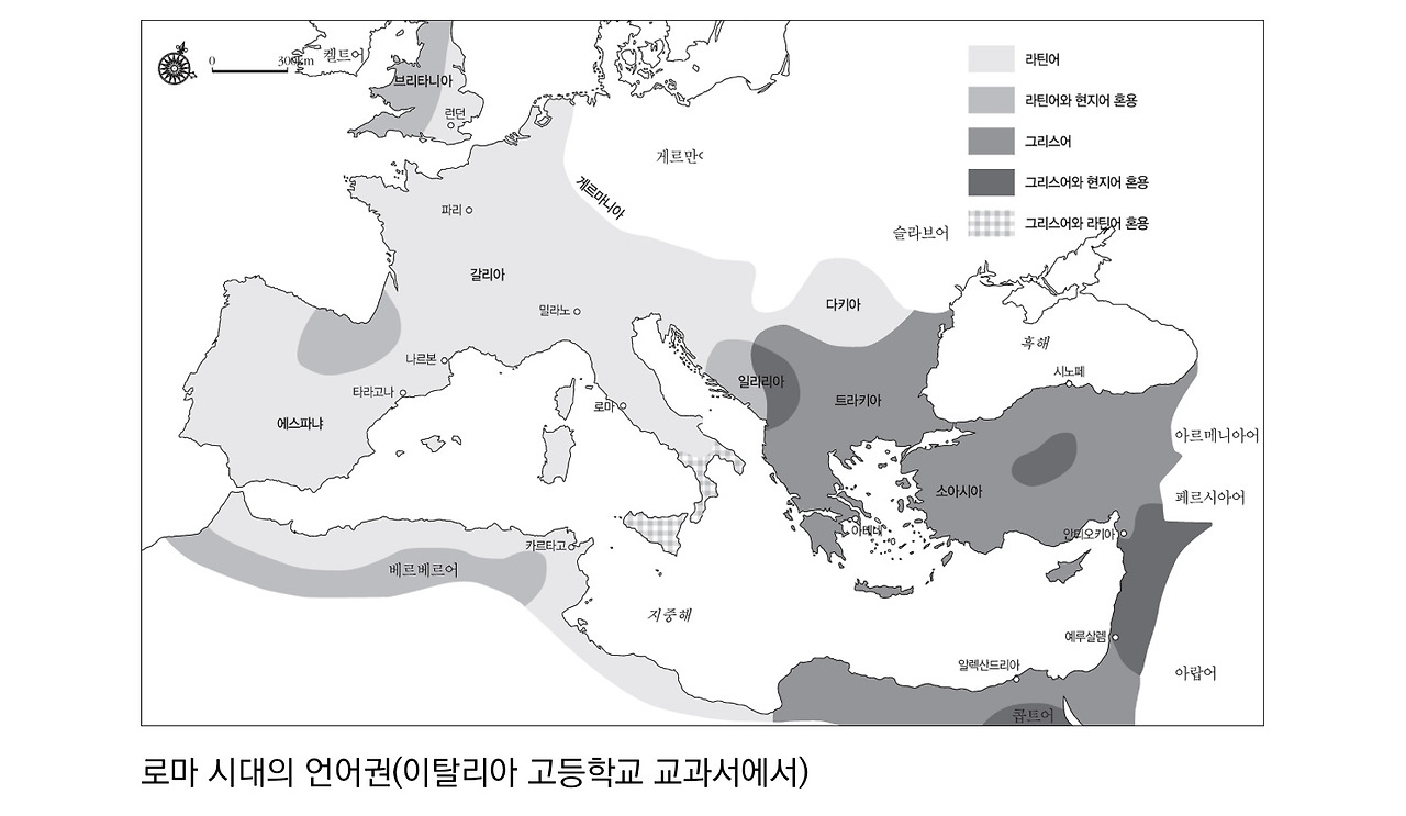 병용은 언어 세계에서도 마찬가지였다. 당시 광범위하게 채택된 언어가 두 개 있었는데, 언어로서 완성도가 높은 그리스어와 라틴어였다. 카이사르는 로마 최초의 국립도서관에 그리스어 책과 라틴어 책을 함께 갖추어놓으라고 명령했다. 또한 그리스어권에서는 로마 중앙정부에서 나온 공고도 그리스어로 발표되었다.
