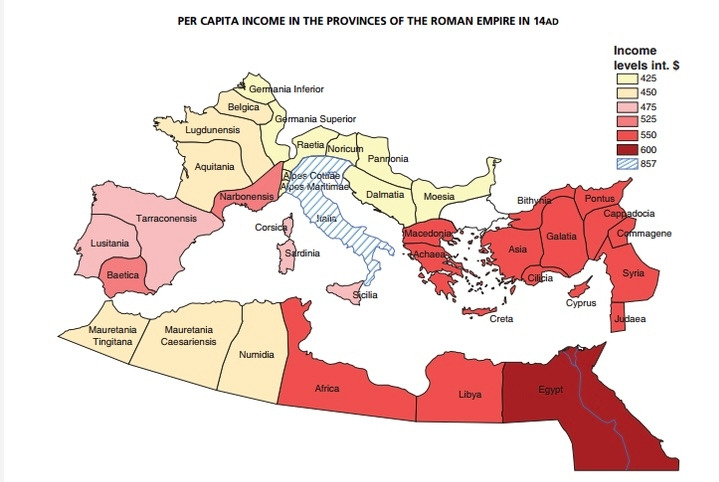 갈리아인 집단촌에 불과했던 메디올라눔(오늘날의 밀라노)이나 타우리노룸(오늘날의 토리노)에도 로마인 도시와 같은 도시 계획이 시작되었다. 루비콘강이나 피렌체를 흐르는 아르노강도 이제 더 이상 본국과 속주를 가르는 경계선은 아니었다.