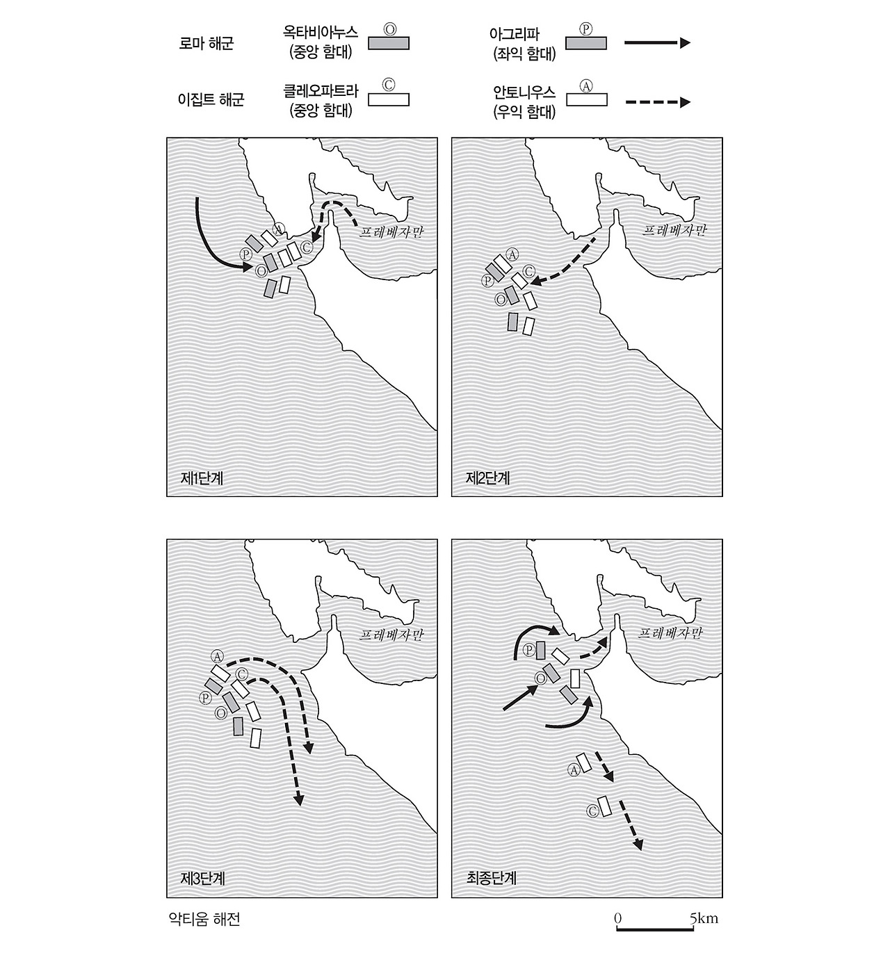 안토니우스는 잠시 생각한 끝에 클레오파트라의 주장을 받아들였다. 안토니우스는 로마군의 ‘등뼈’인 백인대장들을 두려워하고 있었다. 그러나 바다에서라면 그 위력도 떨어질 수밖에 없다고 생각한 것이다.