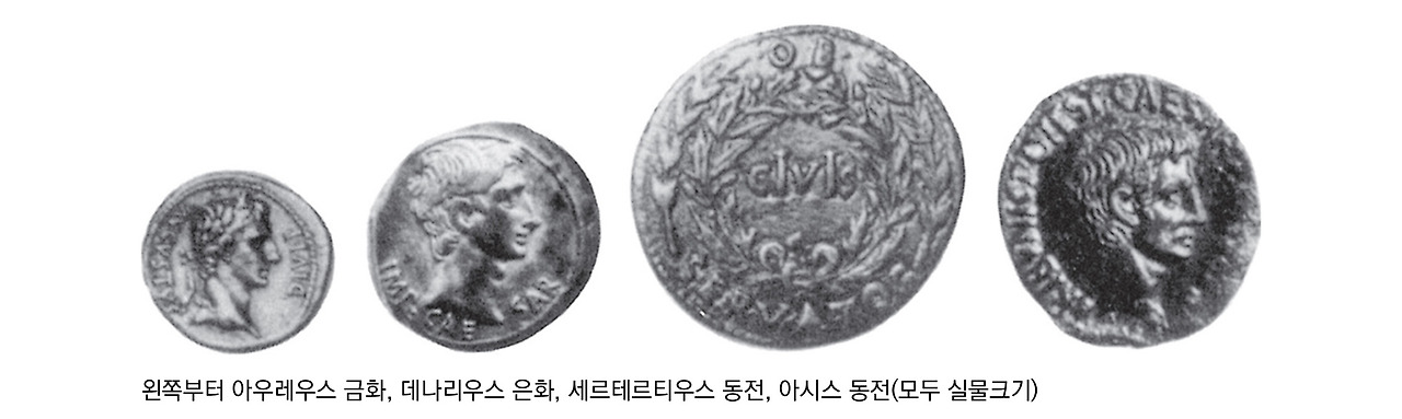 로마에는 오랫동안 화폐라고는 은화와 동전밖에 없었다. 금화는 개선식이나 그밖의 기회에 기념으로 만들어져 배포되었기 때문에, 일반적으로 널리 쓰이는 것을 목적으로 한 통화는 아니었다. 물론 금화는 금의 함유량이 100퍼센트인 순금이니까, 갖고 있어도 나쁠 것은 없다. 하지만 이른바 ‘통화’는 아니었다.