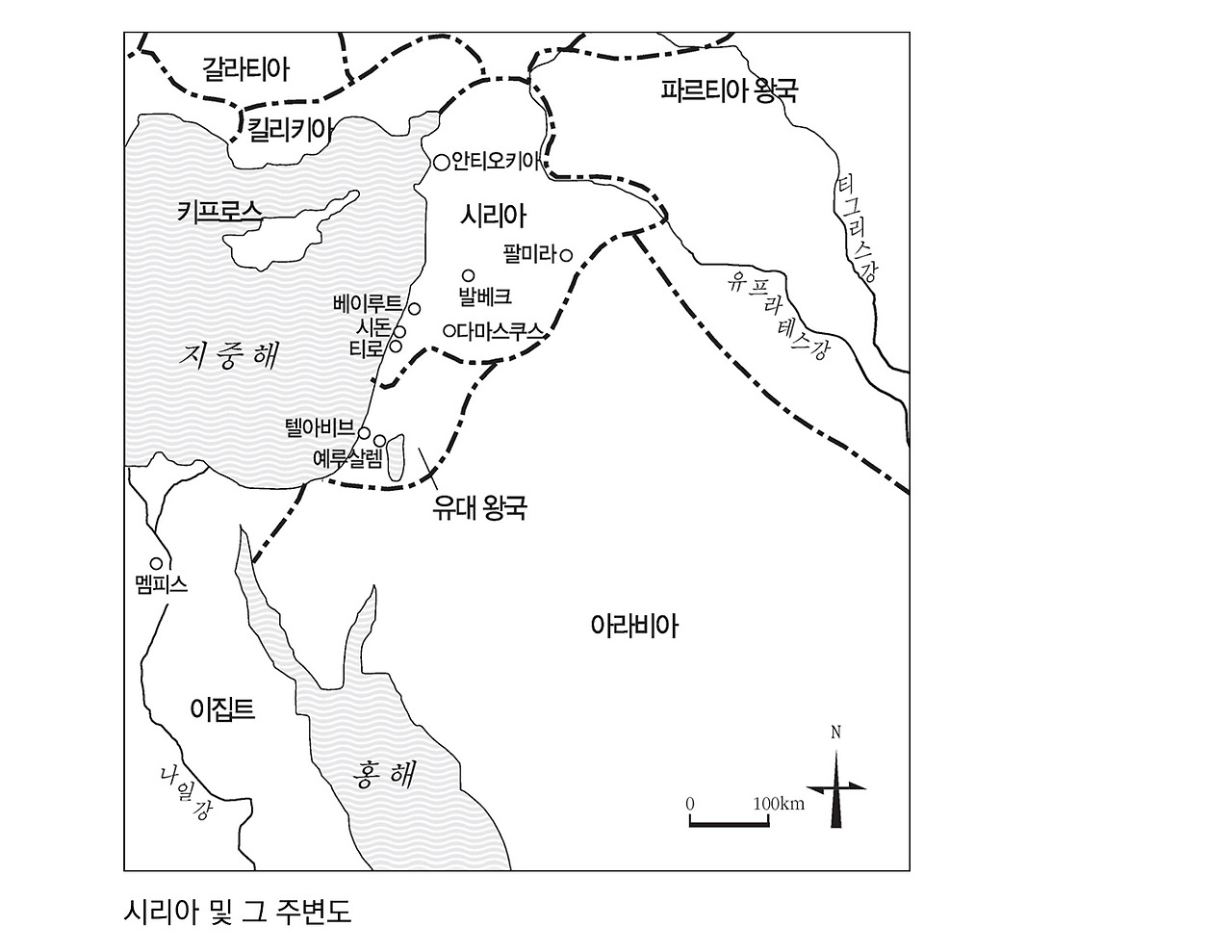 오늘날로 치면 터키 남동부의 일부에다 시리아와 레바논을 합해야만 겨우 로마 시대의 시리아 속주가 된다. 이렇게 땅이 넓은 만큼 민족 구성도 복잡해서, 그리스계와 페니키아계와 셈족으로 나뉘어 있다.