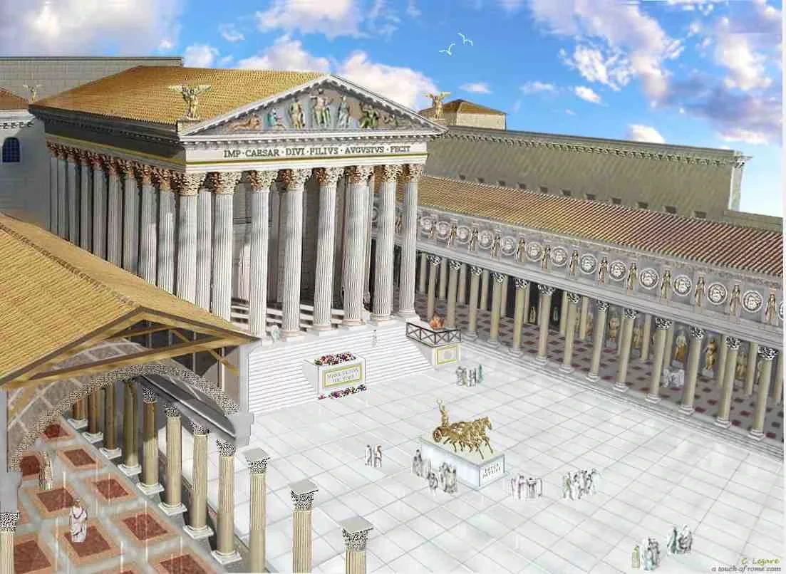 또한 전쟁과 복수의 신 마르스에게 바치는 신전을 중심으로 하는 ‘아우구스투스의 포룸’은 한창 건설되고 있었다. 이 신전 건립의 목적은 기원전 42년에 브루투스와 대결한 필리피 회전을 앞두고 마르스 신에게 서약한 것을 지키기 위해서였다.