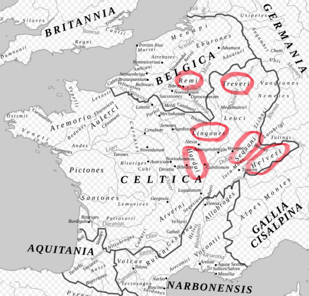 트레베리족은 모셀라(오늘날의 모젤)강 주변에 사는 부족으로, 카이사르에게 정복되어 로마의 지배를 받게 된 지 100년이 지났다. 비슷한 처지에 있었던 링고네스족의 거주지는 트레베리족의 거주지 남쪽에 있다. 율리우스 키빌리스가 피워 올린 반란의 불길이 어느새 갈리아의 한복판까지 바싹 다가온 것이다.