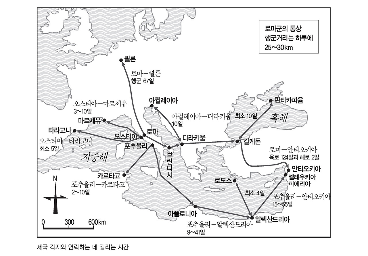 ‘타라코넨시스 속주’라고 불린 이베리아반도 북동부가 그의 임지였지만, 총독 주재지인 타라코(오늘날의 타라고나)에서 로마의 외항 오스티아까지는 순풍을 타고 직항로를 따라가면 닷새밖에 안 걸린다. 불안한 해로를 피해 육로를 택한다 해도, 남프랑스를 돌아 이탈리아로 들어가서 로마에 도착하는 데 한 달이면 충분하다.