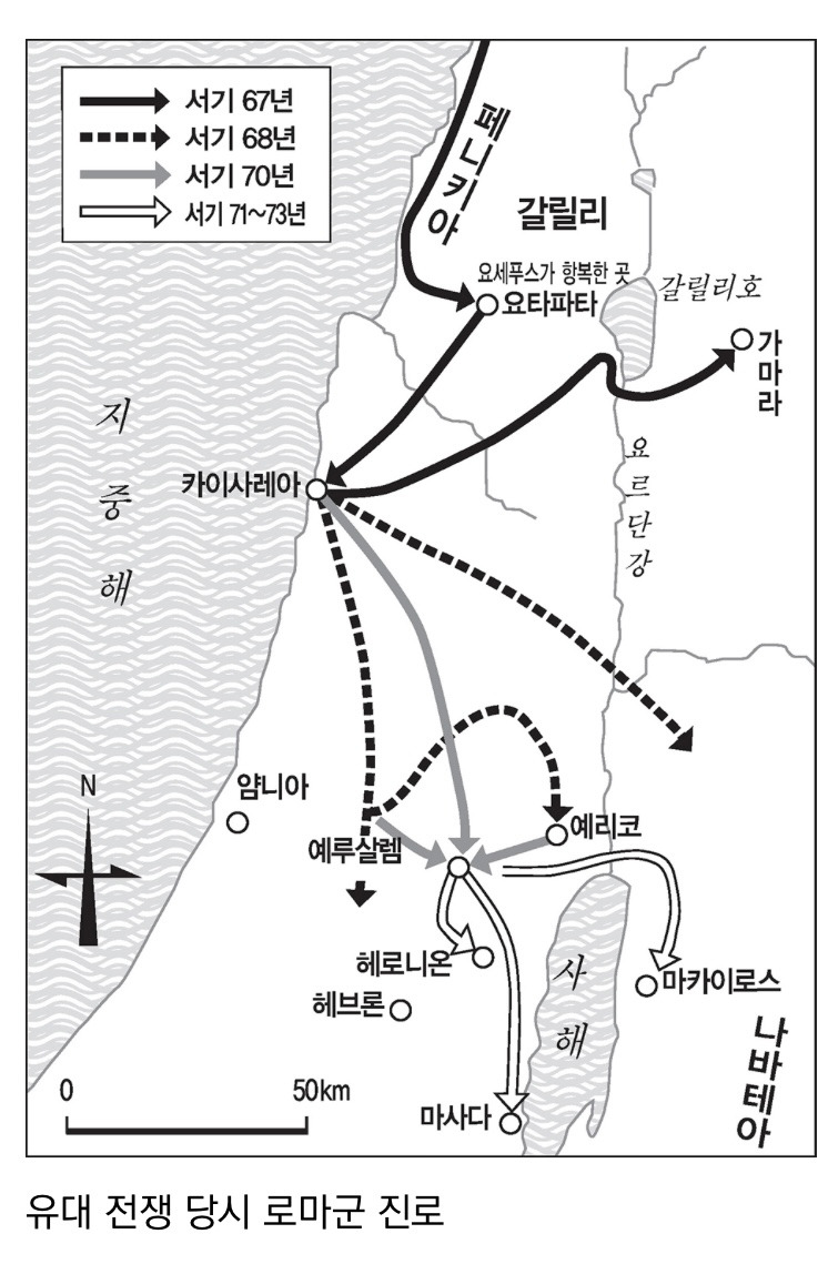 서기 66년 여름에 일어나 73년 봄에 끝나는 ‘유대 전쟁’은 로마 제국 내 속주민이 패권자 로마에 저항하여 일으킨 독립운동이라는 점에서는 바타비족 반란과 같은 의미를 갖는다. 하지만 유대인들의 반란은 불가피했고, 유대인과 로마인의 사고방식, 즉 문명의 차이를 생각하면 이것은 숙명적인 대결이었다고 말할 수밖에 없다.
