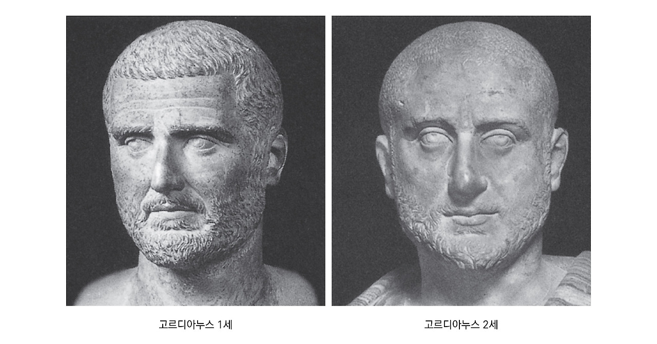 238년이라는 해는 3년 전부터 황제였던 막시미누스, 그해에 즉위한 고르디아누스 1세와 그의 아들 고르디아누스 2세, 거기에다 푸피에누스와 발비누스를 합하면 무려 다섯 명의 황제가 나타났다 사라진 해가 되었다. 남은 것은 열세 살 소년뿐이었다.
