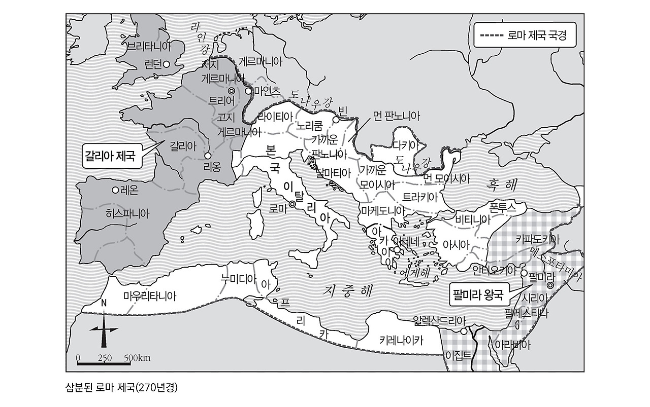 3세기에 로마 제국의 경제력은 계속 쇠퇴하는데, 그 요인 중 하나는 국세 수입이 줄어든 것이었다. 게다가 수입은 줄어드는데 지출은 계속 늘어났다. 군사비가 급증했기 때문이다. 군사 조직이 비대해진 것이 아니라 전쟁 횟수가 늘어난 것이다.