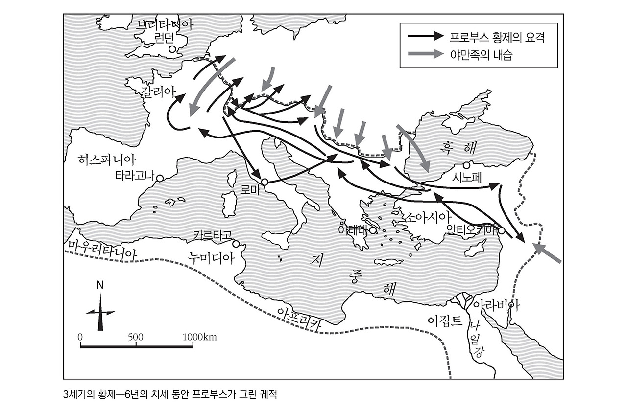 아우렐리아누스 황제의 죽음과 프로부스 황제의 죽음은 이 시기에 통치하는 자와 통치받는 자의 거리가 한도를 넘어 지나치게 단축되었음을 보여준다. 실력주의는 어제까지만 해도 나와 동격이었던 사람이 오늘부터는 나한테 명령을 내리는 지위에 오를 수 있다는 뜻이다. 이런 현실을 납득하고 받아들이려면 상당한 사려 분별이 요구되지만, 그런 합리적 정신을 가진 사람은 별로 없다.
