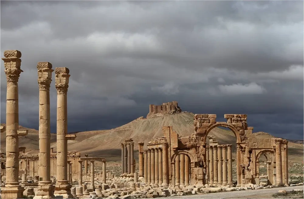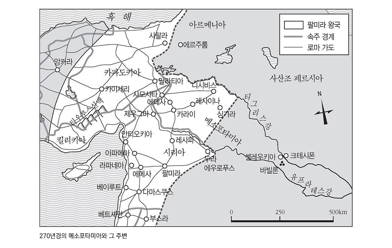 유프라테스강과 지중해의 중간 지점에 있는 팔미라는 시리아사막의 오아시스에서 시작되었다. 이 팔미라가 시리아 사막의 진주라는 찬사를 들을 만큼 화려한 꽃을 피우는 것은 로마 제국에 편입된 뒤였다. 로마가 사막을 오가는 카라반에게 일상다반사였던 베두인족의 습격을 배제한 것이 팔미라의 번영으로 이어졌다.